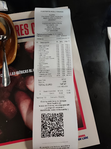 Read moreDespués de 10 años sin visitar Foster's Hollywood en Alzira, decidí dar una segunda oportunidad al restaurante, pero lamentablemente la experiencia fue decepcionante. Acudimos en diciembre de 2024, un grupo de 10 personas, en un momento en el que el local estaba al 50 % de su capacidad. Sin embargo, el servicio dejó mucho que desear desde el inicio hasta el final.