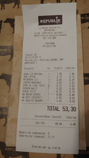 Read moreExperiencia NEFASTA. Pedimos una hamburguesa al punto y la otra muy hecha. Nos las traen cambiadas y pedimos que las traigan como toca. Las traen, y una de ellas, que llevaba aros de cebolla, con éstos totalmente fríos y blandos (recién sacados de la nevera, de otra remesa sobrante). Pido que los cambien. Tras ello compruebo el punto de la carne nuevamente y veo que la del punto estaba muy hecha. Lo digo y me la cambian. Vuelve a estar muy hecha, lo digo y la vuelven a cambiar. Y volvemos a empezar: vuelve a estar muy hecha y ya, por agotamiento, decido desistir y tras decirles que nuevamente está muy hecha, ya no quiero que me la cambien. Me dejé media hamburguesa, y por lo visto me comentaron que mi caso no fue el único esa noche, que con otras mesas pasaba lo mismo. No tuvieron ni el detalle de ofrecerme no pagar por la hamburguesa que apenas probé. Pero los camareros fueron muy amables y atentos, y como estaba de ánimo, decidí no exigir que no me la cobrasen ni pedí la hoja de reclamaciones. Ahora que no me vuelve a pasar, porque no pienso volver a ir. Si el cocinero es nuevo o está de resaca de nochevieja, la gerencia debería encargarse. En fin, “cena”...