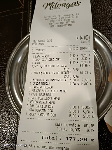 Read moreWe were in Milladoiro and decided to try Milongas Parrillada out for dinner. We didn't have a table reserved any it wasn't a problem. We were shown the size of our cut of meat (we chose a chuleta menu to share) and after an initial char on the grill, the meat was sliced up so we could cook it at the table to our liking. The chuleta was excellent and the sides of fries and salad were perfect to fill us up. What I liked about this place was that it's unpretentious, the staff (in particular Lisi) are really lovely and the food is the focus. You can tell the difference when you're in a place like this. We will definitely be coming back. Thank you for a...