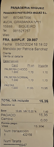 Lazos de hojaldre riquisimos, café bueno y bien acompañado. Pero hoy ha sido mi último día. 2 mesas, otra y la mía, cada una con una persona. Le pido el café al entrar y tan pronto me lo trae le pago me trae la vuelta y sigo con lo mío. Me llega la hora de irme, me voy y digo chao (no me contesta seguramente porque estaba atendendiendo a una clienta que iba a por pan y no me escuchó). Cual es mi sorpresa que tan pronto salgo a la calle me dice que si le he pagado, y yo, como? Claro que si con una moneda de 2 €, y ella pues no me acuerdo. Y yo, pues si, te he pagado con 2 € y me trajiste la vuelta, pues ella, pues no me acuerdo pero si tu lo dices te creo, mirándome con desconfianza y sin salir del marco de la puerta, un buen rato con la misma historia.. El mal trago en la calle lo he pasado yo sin culpa, y repito, éramos 2 mesas dentro, si fuesemos más podría incluso llegar...