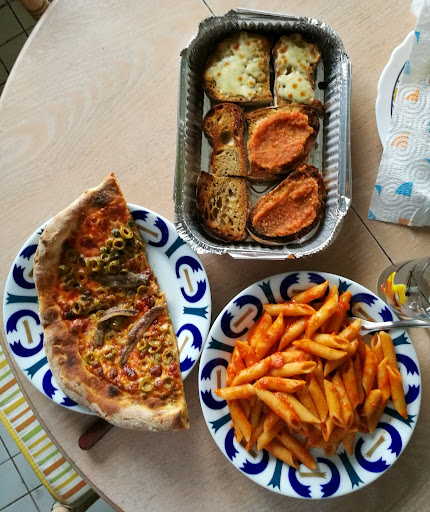 Te sirven una pizza con la superficie empapada en agua, con olor a masa cruda y con un regusto avinagrado (lo cual no quiere decir que tenga vinagre, sino que el producto no se ha elaborado correctamente). Absolutamente incomestible, tanto por sabor como por salud directamente. Lógicamente, quedó prácticamente entera en el plato.