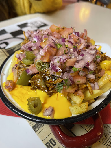 Read moreFuimos a cenar con unos amigos,que desde las 21h estaban guardando sitio,y antes de las 22h ya llegamos y en 15min pedimos la comida y bebida. Nos dicen que tardaran 1h en servirnos y nos quedamos igual. Pero para sorpresa al cabo de 1h no habian sacado ni la bebida,que si que estaba el local lleno,pero que pongan mas personal dentro y fuera de cocina. Sois unos lentoooos!! Al cabo de 1,30min sacan la comida a mis amigos y a mi no!! Y lo pido,15min despues lo sacan y encima con salsa picante,cuando sobretodo lo dije que no queria la salsa. Ufff, lo devolvi,pero tonta yo casi a las 12h de la noche me espere otra vez,con la hambre pasada y quede decepcionada,me sacaron el plato con patatas fritas congeladas(no caseras,que con lo que cuestan)hot-dog quemado y reseco,con el queso crudo... Bueno en fin Que an perdido clientes,porque aunque los camareros se disculparon varias veces,esto no fue para nada un servicio normal,estuvo malisimo!! Y a pagar 15€ cada uno,que de barato...