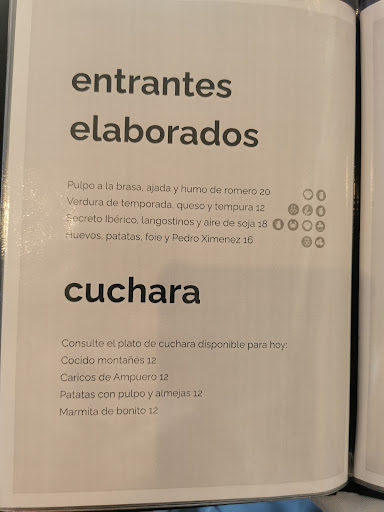 We had the "Menu Especial" and it was all very nice, the portions were a good size and a bottle of water plus a bottle of wine (red in our case) were included in the price, we were also treated to an aperitivo at the start of our meal and some truffles and pastries at the end (after dessert), the waiter was very attentive and helpful, they had gluten free bread, food intolerances are stated on the menu and once the waiter knew about my gluten intolerance he also advised what was gluten free, will very likely...