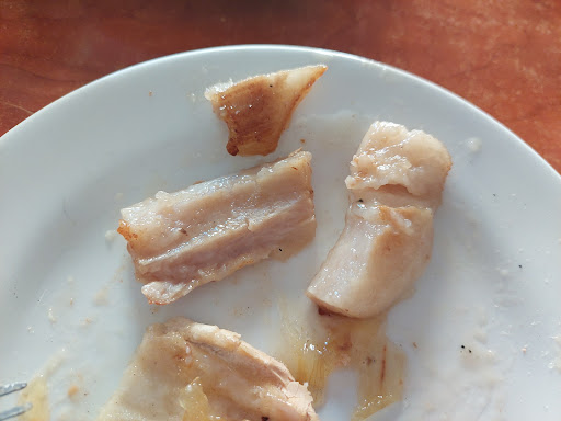 En cuanto a la comida, hubo luces y sombras. El punto positivo fue que, aunque pedimos "carne de monte" esperando ciervo y nos sirvieron ternera, hay que decir que la carne estaba muy rica. El flamenquín, por el contrario, fue una decepción: estaba seco, poco jugoso y no parecía casero (si es que de verdad lo era).