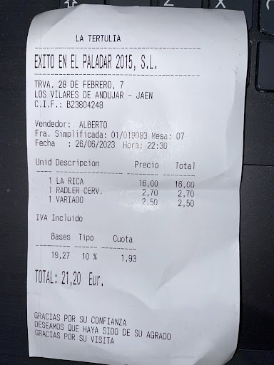 Read moreActualizo, en noviembre del 23 fui a desayunar, el pan (tamaño y calidad) bien, pero jamón sólo para la mitad de la tostada, y de tomate muy justito. Últimamente el sitio va bajando en calidad y cantidad. En las raciones hay más lechugas que comida en sí. El servicio un poco lento (en esta ocasión no ha estado mal, no había mucha gente). La comida esta bajando en calidad, los platos están bien presentados, poca cantidad en relación con el precio, que se podría compensar si la calidad en cocina fuera mejor: por ejemplo las gambas al ajillo de hoy exceso de aceite, sin sabor....bueno si, a gamba congelada....no me han gustado nada. En otra visita anterior, la ración de torreznos era más huesos y ajos que carne en si. No es caro...(cambio de opinión, por la calidad y cantidad que da últimamente, lo veo algo caro) y siendo un "gasto bar"...como digo, últimamente está bajando un poco el nivel. No le veo gran futuro, o cambia la estrategia o una de dos, acaba cerrando o se convertirá en un bar cutre de viejos y...