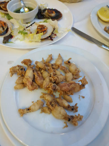 Cuando regresamos, una hora más tarde, nos sorprendieron gratamente al habernos conseguido una mesa en la terraza exterior, algo que, siendo viernes por la noche, es un verdadero lujo y muestra la excelente gestión del local. Al momento de pedir, nuestra intención era decantarnos por unas navajas, mejillones y pimientos. Sin embargo, la camarera, una profesional de la tierra, nos hizo una recomendación muy acertada: no pedir los mejillones por estar fuera de temporada. Este gesto de honestidad y conocimiento del producto es algo que valoramos enormemente y que diferencia a los verdaderos expertos. Seguimos su consejo y cambiamos los mejillones por media ración de chipirones y media de zamburiñas, una elección que resultó ser absolutamente deliciosa. El trato de todo el personal, desde el primer contacto hasta el último, fue inmejorable. Se nota que son profesionales de la hostelería con años de experiencia, y que conocen a la perfección tanto el producto como el servicio al cliente, creando un ambiente cercano y acogedor.