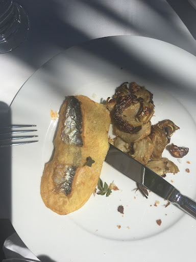 Good bread served with olives and alioli. Needed more for a table of six. The patron took the orders from a small main menu and extensive list of specials that was difficult to remember. The food was very good. Scallops in half shell perfect, clams in good cooking juices. Good portion of lamb chops more rare than medium, large piece of serviola (similar to tuna) in delicious sauce, modest turbot, caught too young. Dover sole was outstanding and the best meunière I’ve tried in a long time. Wine prices a little high for what they were but reasonable house wine. The stinger was the additional 10% IVA. Definitely recommend the food, just watch out...