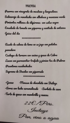 Read moreEstuvimos paseando por el pueblo y entramos en este bar a tomar un refresco, y algo de comer. Cogimos una croqueta, casera y riquísima y un torrezno, espectacular. Tanto nos gusto la comida y el trato que decidimos coger mesa para comer. El menú casero nos sorprendió, mucha variedad de platos para elegir y opciones sin gluten. De primero cogimos algo más habitual, macarrones y espárragos, muy buenos, había legumbre, ensalada, salmorejo... de segundo cogimos merluza a la plancha y carrillera en salsa, espectacular la carrillera con sus patatitas. Postres surtidos y riquísimos, nuestra elección sorbete de limón y queso fresco con miel y frutos secos. 18€ por persona, más que recomendable, bebida, pan y...