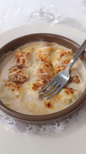 Read moreComimos en fin de semana el menú de 27 €. De primero tomé canelones de carne, que estaban perfectos en sabor y textura. De segundo, la galta rostida: rica y con un acompañamiento de calabacín, patata y berenjena delicioso; las verduras muy bien hechas. La carne estaba tierna, aunque le faltaba un punto más para ser perfecta. El postre, pastel de chocolate, también muy bueno.