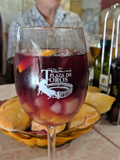 The glass of red wine was lovely but the bread was stale. Overall a lovely experience to eat in the bullring and view all the pictures...