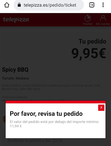 Read moreLamentable este Telepizza, me ha pasado lo que no me ha pasado nunca. He querido hacer un pedido a domicilio y no me lo han querido servir. De primeras el que me ha atendido la llamada ha sido un desagradable, le he querido hacer un pedido para el recinto ferial, vamos un sitio perdido. Y no me ha querido atender, le he querido explicar en donde exactamente quedaba con el repartidor y me.ha contado una película de que el repartidor salía ya de trabajar, he insistido y me ha dejado en espera , para finalmente decirme que está cerrado ya. Insisto, mira que he hecho pedidos a Telepizzas por toda Andalucía, y está es la primera vez que me lo niegan, se ve que hay gente que no tiene ganas de trabajar. Eso es muy malo...