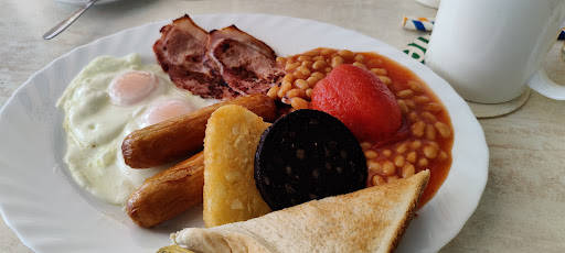 Of the many places in Caleta de Fuste, Fuerteventura to eat, I would say 50 percent are dedicated to English breakfasts. There is a lot of competition and I think I am underestimating it as well. And of the few places we tried this ranked Second for me and first for my wife. She absolutely loved the white coffee here. I really enjoyed the breakfast too, but there are some caveats. This is not a reflection on the Goose and Firkin but the whole island, I think. Personally the sausages here are ok, not good or great. Of the things the goose and Firkin doesn't do well ... serves boxed orange juice (common), the toliet don't smell nice (not the worst, but a problem in certain restaurants in the area), the toast was cold. Sadly they also deep fat fry the mushrooms, not shallow fry on the grill. I didn't spot it straight away but it does put a different taste on it. But as to the breakfast, its better and the same as many other places. Honestly I am not sure that the image is of the big breakfast. The tea, and the water here, is top notch. (No scum, very clear, but don't drink unboiled.) All this I would highly recommend this place for your...