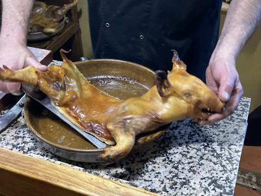 Read moreEsperábamos más de este sitio por los comentarios anteriores y la fama pero nos decepcionó. Las mesas del comedor muy juntas. El comedor no resultaba atractivo. Cuando vas a comer a un sitio esperas que sea una experiencia agradable. La comida correcta sin más, pero el cochinillo no estaba tostado por fuera y no estaba hecho en horno de leña. Tal vez el horno de leña no da de sí para tanto comensal y necesitan usar otros tipos de horno, además del de leña. En todo caso no estaba tostado ni sabía a horno de leña. Además la salsa estaba saladísima. Pedimos una ensalada de lechuga y tomate. Nos pareció que era barata y estábamos dispuestos a pedir más si se nos quedaba corta pero no fue necesario. La sorpresa vino en la cuenta, nos cobraron una ensalada para dos, pero nosotros no pedimos eso en ningún momento: nosotros pedimos una ensalada tal y como figuraba en la carta, no dos ensaladas ni una ensalada para dos. ¡Esas cosas se avisan! Nos sentimos algo estafados. Y el ponche segoviano muy reseco y escaso. Otra cosa que nos ocurrió es que se dieron demasiada prisa . No habíamos pagado todavía y ya estaban quitando las cosas de la mesa. Cuando vas a comer a un buen restaurante no te gusta que te agobien. En resumen el sitio no estaba a la altura y tal vez las expectativas...