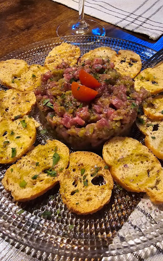 Read moreRestaurante encantador en Aracena. Pedimos tres platos para compartir. Al traernos las bebidas nos pusieron un platito de garbanzos aliñados para empezar que estaban muy buenos. De primero pedimos un entrante que era paté de pato y perdiz con una mermelada de cebolla y mango que estaba espectacular. Después pedimos un lomo de atún en salsa de almendras con gambas acompañado de setas que estaba muy bueno y para finalizar la comida una carrillera con una parmentier que estaba exquisita, de las mejores que me he comido. Por ultimo, pedimos una tarta de queso con dulce de leche que estaba muy buena también. Felicitar al cocinero Juan Hormigo y a su mujer Maria José que nos atendió maravillosamente. Una experiencia increíble sin duda...