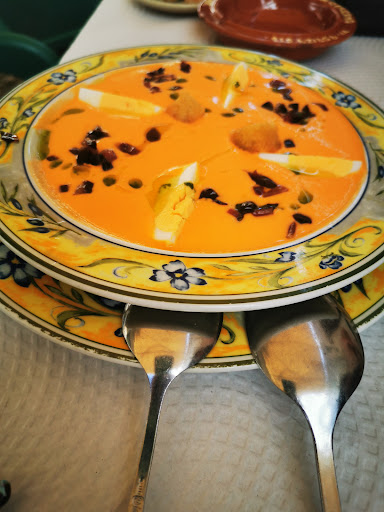Read moreExcelente!!! No sabíamos que nos íbamos a encontrar con un restaurante de calidad superior cuando decidimos preguntar por una mesa en la este sitio. La relación precio calidad, supera en creces la calidad al precio. Primero nos dieron una tapa de jamón de bellota de verdad verdad !!!! El sabor del Jamón era glorioso. Unas aceitunas de la región que estaban deliciosas, carnosas, con un aliño estupendo. Para comer (dos personas) pedimos todo para compartir, unas setas boletus saldadas con jamón de bellota, estaban súper buenas, el plato más que generoso, las setas estaban jugosas, frescas, además con el sabor del jamón. Seguido tomamos un salmorejo con jamón de bellota y huevo, cremoso, fresco, sabor perfecto, cada cucharada era una explosión de sabor en la boca. Y como plato fuerte pedimos un "Lingote de carrillera de ternera con salsa de vino y patatas (no me acuerdo)" lo cierto es que ya la sola presentación del plato fue fantástica, pero la calidad era suprema, carne fresca, jugosa, tierna, se deshacía en la boca, además juegan con patatas blancas y violeta, que le daban un colorido especial al plato, además de excelente sabor. Y para cerrar con broche de oro, el postre fue un Tocino del cielo con crocanti helado de almendras, otra maravilla, el sabor, la textura, todo todo todo buenísimo!!!! A esto le agregamos la atención familiar y amable. Mira pareja y yo quedamos gratamente sorprendidos por este lugar. De hecho ha sido la mejor comida de todo el verano!! Ahí unas fotos, faltan las setas, y la...