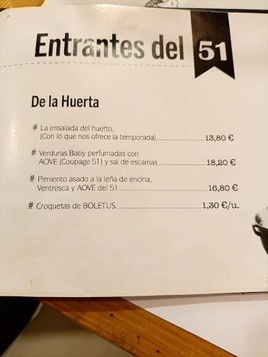 A Refined Culinary Experience at El 51 del Sol in Aranda de Duero We visited El 51 del Sol on a Sunday evening. Although the main dining room was closed, they offer the option to dine in the bar area — a comfortable, calm, and pleasant space that was quite lively. The staff were attentive, efficient, and the service was impeccable throughout. We ordered several starters: a cheese board, boletus croquettes, and txipirón (squid) croquettes — all excellent. We then shared a fresh and perfectly executed ensalada de la huerta, followed by cocochas al pil pil and a pichón stew. Every dish was outstanding in both flavor and presentation. For dessert, we tried the goat’s milk flan with licorice ice cream — an absolute delight, creative and delicious. The wine list offers great quality for the price. We chose El Holgazán from Bodegas Marta Maté, a fresh and fruity red wine that paired beautifully with the meal. We went without a reservation and were glad to find a table. Highly recommended for anyone looking for refined cuisine and excellent service in...