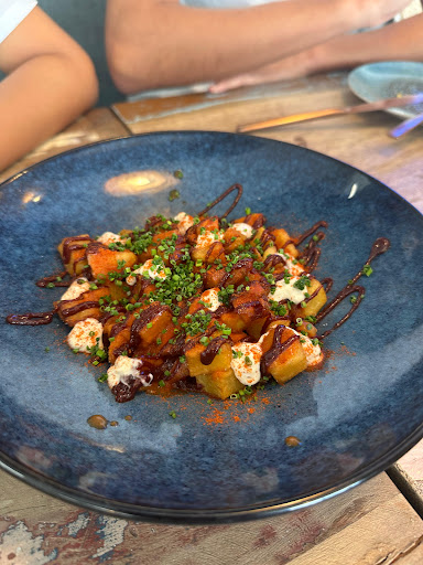 Read moreBuscamos un sitio que no nos desviase mucho de la ruta en nuestra vuelta a Andalucía desde Bilbao y Aranda del Duero parecía buena opción por la hora a la que teníamos previsto pasar por allí. Al buscar vimos las reseñas y no podemos más que confirmar que son ciertas. El sitio está decorado con gusto y con mimo, se percibe el cariño con el que se han cuidado los detalles. Cariño también vigente en la carta y elaboración de los platos. Pedimos bravas, el surtido de croquetas y brioche de pastrami para luego coronar con una hamburguesa de ternera que estaba en su justo punto (la pedimos hecha pero estaba superjugosa y sabrosa). Desde los ingredientes hasta la presentación, sorprende encontrar una cocina así de elaborada y cuidada en un polígono industrial. Puede parecer un precio elevado, pero a poco que hagas la compra, cocines y emprendas, sabes que todo tiene un precio y aquí la relación calidad-precio es muy correcta. La única pega, por poner alguna, es que la mesa en la que estuve tenía un filo astillado, pero también es cierto que podría haberlo dicho entonces o habernos cambiado. En cualquier caso 5 de 5 porque todo estaba muuuuy rico y muy cuidado.
