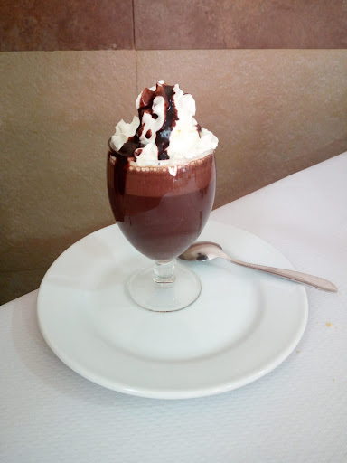 El segundo plato elegimos un bistec de ternera muy bien hecho, tal y como lo pedimos, y que se salĂa del plato, acompañado con patatas fritas. Dejo una foto de la buena pinta y de lo rico que estaba la Mousse de chocolate del postre.