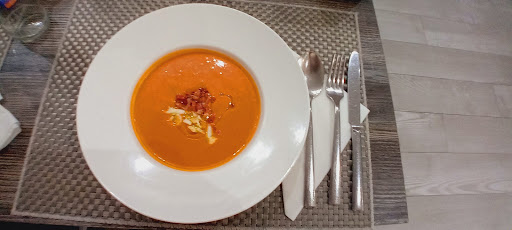 Éramos varios y pedimos el menú del día ....de primero unos pedimos La ensalada verde con aguacate y queso feta, de lo mejor .... Algo sencillo, cantidad suficiente para un buen plato 😋 y otros el salmorejo, espectacular!!