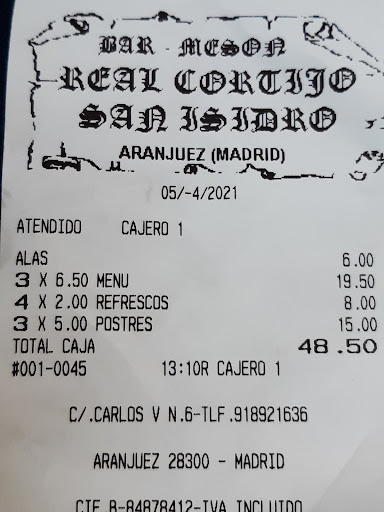 Read moreMesón situado el el Cortijo Real de San Isidro, cerca de Aranjuez. He os probado el menú especial de 55€ y estaba todo muy bueno. Vino Ribera del Duero crianza de 2019 Rincón de Castilla, muy bueno. De entrantes media ración de bacalao ahumado con tomate rallado y aceite de oliva. También degustamos media ración de champiñones a la plancha y una ensalada exquisita con bonito, tomate, lechuga, espárragos y cebolla de la huerta de Aranjuez con huevo cocido. De segundo chuletón de vaca madurada de 1200 grm con patas fritas. De postre tarta casera de chocolate y otra de queso buenísima. Atención excelente y buena...
