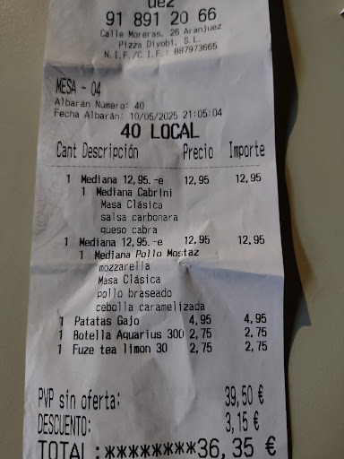 Read moreAl entrar parecía que estábamos en Narnia, haría aproximadamente 13 grados en el local. Los camareros iban vestidos con el abrigo y riñonera puestos, nos pusieron las servilletas, que previamente se le cayeron al suelo y aun asi nos las puso, sin cubiertos ni platos, sólo los cartones tipicos en forma de triángulo que te suelen dar con la comida para llevar, y uno de ellos manchado con grasa de sus manos. Las bebidas nos las sirvieron en lata y sin hielo. Se equivocaron con la comanda de una de las mesas (sólo estabamos tres mesas, cinco personas en total) y se pusieron a discutir a voces en la cocina. Cuando nos fuimos ni siquiera dijeron adiós ni gracias, porque estaban todo el tiempo metidos en la cocina y si querias algo o les llamabas a voces o esperabas a que salieran por casualidad. Los mismos camareros también eran los repartidores. Pedimos una pizza, una mitad de cada cosa y las cortaron por donde les pareció, y cuando pedimos un cuchillo porque estaba casi sin cortar, el camarero estuvo mas de 5 minutos buscando un cuchillo por todo el local, ya que imagino que le daría miedo preguntar a los otros dos que estaban discutiendo a voces en la cocina. Los precios de la carta están desactualizados. He estado en otros locales de esta franquicia y todo era mucho mejor. Estaría bien que hicieran un control...