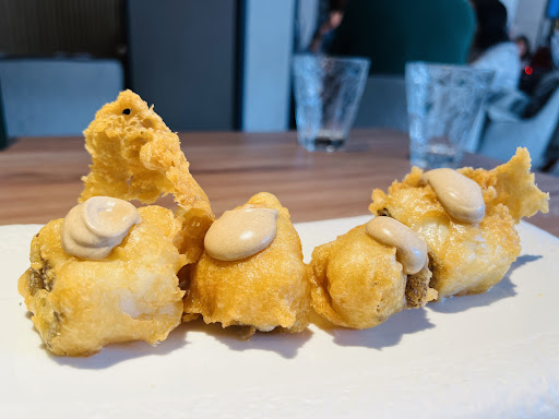 Continuamos la comida con un pulpo enano frito el cual nos encantó, crujiente por fuera, súper tierno y la verdad es que con la mahonesa de kimchi que ponen de acompañamiento funciona a la perfección. La ración es muy generosa por lo que cuidado a la hora de pedirlo por si no queréis llenaros antes de tiempo.