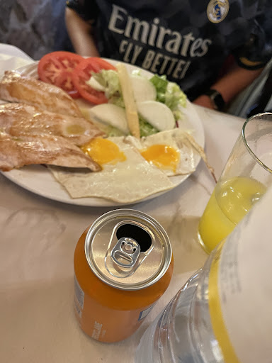 Decidimos ir a comer a este rte,que lo conociamos de ir una vez con unos amigos,y comimos bastante bien y bien de precio. A nuestra llegada estaban bastante llenos,pero nos han preparado una mesa rapidamente,y nos sentamos. Nos trajeron nuestras consumiciones mientras mirabamos la carta para pedir la comida,disponen de amplisima carta de raciones,bocadillos,hamburguesas,sandwiches,y croisant's XXL,ademas de platos combinados,ademas de calidad y cantidad,todos ellos a buen precio. Nosotros nos pedimos una hamburguesa completa con huevo,lo unico que viene sin patatas,y hay que pedirlas aparte como suplemento. Y un croisant's XXL de La Casa relleno de embutidos con salsa rosa y os lo recomiendo ya que es para compartir,como minimo para 2,al ser enorme y venir super relleno. Postre no tomamos,al tener solo tartas y natillas,no habia mas postres caseros. Nos tomamos un cafe y nos fuimos. Totalmente Recomendable!!!! Si quieres comer o cenar en Aranjuez,a buen precio,y comida de calidad y cantidad,no lo dudes y ir a...