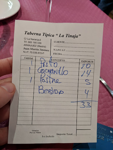Read moreSin lugar a dudas el mejor sitio para comer o cenar en aranjuez , la camarera jovencita muy agradable y atenta , el local muy bien decorado , pequeñito eso si , solo tiene cuatro mesas , aunque podeis picotear en la barra , claro es una taberna , no reservan , pero merece la pena que vayais , en cuanto a la comida que es lo que mas importa , los torreznos crujientes como en pocos sitios , las navajas con una salsa que estaba deliciosa , no pudimos pedir coquinas y zamburiñas , no quedaban , pero volveremos , los que vayais a visitar aranjuez es un lugar que no deberiais perderos y con unos precios mas que razonables , en definitiva excelente . Volvimos otra vez y no quedo mas remedio que bajar la valoracion , comenzamos poniendonos pan el la mesa sin pedirlo , mal , no se debe poner nada que no se haya pedido y luego cobrarlo , seguimos con unas cocretas quemadas , amargas , que no sabian a nada , mejor ni las pidais , y para terminar a pesar de haber servido cafe a las dos mesas de al lado nuestro , nos dice la camarera que en ese preciso instante se rompio la maquina , no seria que habia gente esperando , mejor dices la verdad y me lo tomo en la barra , las zamburiñas eran vieiras en fin nada parecido a...