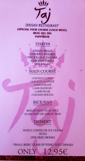 Just been to the Taj Indian Restaurant for the fiirst time at their new location. The restaurant is very well presented and the waitress was very helpful and pleasant. We ordered mains and side dishes, and had poppadoms while waiting for the food to be freshly prepared. The food was served and I can say it was amazing, we had opted for Lamb Tikka Main, Chicken Tikka Pathia and Aloo Gobi, plus breads. Flavours were fantastic. I particularly liked that curry dishes were served in individual balti dishes on a stand with candle so that the food remained hot in serving dishes. Dinner for 2, with a couple of drinks each was 50 euros, which was very reasonable considering quality of food, portion size...