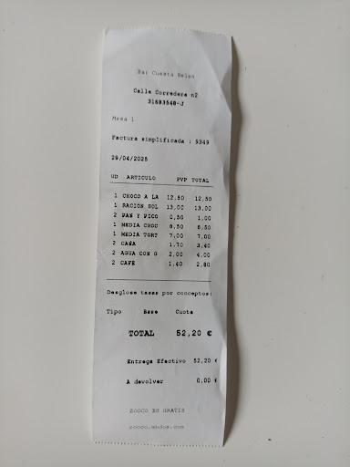 Read moreGood tapas and cold beer at decent prices, along with attentive but unobtrusive, and entirely correct service. The waiter spoke English to people who spoke English to him, and Spanish to those who spoke Spanish. Not once did he reply in English to a foreigner speaking Spanish, unlike too many waiters in Spain. He was also fast...