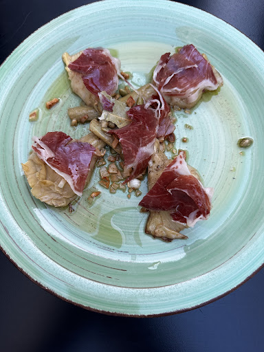 One of the best meal we had in Andalusia ! The restaurant was relatively quiet when we arrived by 8pm but it soon got busier. It’s a charming little place with great atmosphere and friendly helpful staff/owners. My husband had a cold beer to quench his thirst while I tried the dry white sherry. It’s a quaint taste but I liked it. With the meal, we ordered the red wine by the glass in a way to taste different ones instead of buying a bottle you might not enjoy. Anyway, they were all good . Our favourite was the Quadis. As for the gorgeous food, we shared the artichokes with ham, the croquetas caseras and the pork in wine sauce. All amazing ! Simple but lots of flavours ! À the table next to us, they also had the revuelto de baclao which sounded fantastic too but we were too full to try it… Don’t miss this place when in Arcos.