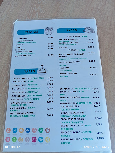 Read moreFuimos desde Campillos a visitar este local.. Es un pequeño bar de comidas caseras. Pedimos tapas y la comida hay que decirlo está muy buena. Los tacos ,las croquetas de pollo, los calamaritos y pitiflanes muy ricos de sabor. Lo que pasa que fuimos en Domingo y era un caos se equivocaron con nosotros varias veces llevaron nuestras tapas a otra mesa y después que llevaba un rato se la quitaron y nos la pusieron a nosotros. Y eso me parece antihigiénico la otra mesa tocando las tapas y nos la pone a nosotros porque la chica se equivocó. Por lo demás fueron muy simpáticos,hay que esperar un poco pero es que no tienen personal un domingo que estaba lleno. El local es ruidoso y pequeño pero tienen una terrazita soleada donde se suele poner la gente.. Las tapas desde 1.50€
