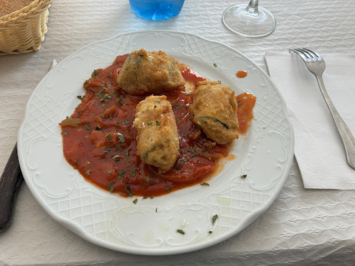 Read moreLlamamos con poca antelación y reservamos una mesa ena terraza con perrilla. Pedimos dos menús, bien de cantidad y relación calidad precio correcta. Un buen lugar para parar de viaje. La camarera nos atendió rápido y bien y estuvo pendiente durante toda la comida. El arroz negro estaba bastante bueno, y los rollitos de calabacín también, aunque no casaban mucho con la salsa de tomate, que estaba bastante dulce y enmascaraba el sabor. De segundo pedimos cordero guisado, que estaba muy bueno, y bacalao rebozado, cuya única pega volvía a ser que la salsa de tomate estaba muy dulce. Ambos platos estaban acompañados se huevo y patatas. De postre pedimos helado y una tarta de arándanos a la que no quise ni sacarle foto. Pregunté si era fría porque no me apetecía un postre contundente... Me trajeron una tarra de varios pisos de bizcocho de chocolate, con nata de bote y una crema por encima que parecía tener arándanos picados, pero que en conjunto ni por separado sabía a arándanos. Pocas veces he dejado sin comer un postre pero aquello no tenía ningún valor culinario, nutritivo ni te cuento. Sabor indeterminado, muy dulce y sin atractivo. Para nada lo que espera quien pideuna tarta fría de arándanos, que sería algo más tipo mus. Pero en general el sitio bien y que puedas comer con perro es una estrellita más...