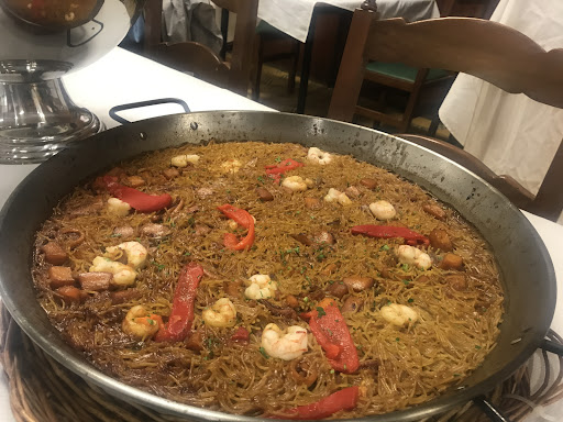Comida: No hay menú es servicio a al carta los precios no están mal por cabeza la paella sale a unos 14€, en esta ocasión hemos pedido fideuá para 3 y nos han traído una paella enorme de hecho yo soy de comer mucho y no hemos podido acabar con ella, el camarero amablemente nos ha puesto lo restante en un recipiente para llevárnosla. Éramos 4 personas de entrantes hemos pedido croquetas, guisantes, bebida vino con gaseosa en esta ocasión dos gaseosas, postre uno por cabeza. Conclusión: Lo recomiendo por cantidad calidad, soy de los que prefiero pagar y comer bien que no quedarme con hambre, sumando todo conjuntamente algún café ha salido por unos 120€ 4 personas con todo lo mencionado, incluyo fotos para que las...