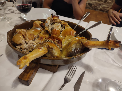 Este restaurante es un excelente lugar para disfrutar de cochinillo, posiblemente el mejor que he probado. Desde el momento en que entras, te das cuenta de que estás en un lugar especial. La decoración rústica y acogedora crea una atmósfera cálida que te invita a relajarte y disfrutar de la experiencia gastronómica.