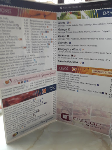 Ya hacía tiempo que no nos sentábamos en su terraza a tomarnos algo tranquilamente y la semana pasada decidimos ir. Askar es un sitio de los de "toda la vida", con personal de los de "toda la vida" (jejejeje) y lo mejor de todo, una cocina de las de "toda la vida" (muy buenas cocineras). Sus hamburguesas siempre han tenido muy buena fama y muchas veces hemos dado buena cuenta de ellas pero esta vez nos decantamos por 3 raciones: una tosta noruega (nos entró por los ojos al llevarla a otra mesa), una ración de mollejas (un clásico) y unos chipirones a la plancha encebollados que se hicieron esperar pero que merecieron muchísimo la pena. ¡¡¡Estaban...