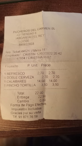 Read moreHay que ir con muuuucho tiempo. Una persona dentro de barra para las tropecientas mesas que tiene, desastre asegurado. Nos estresamos en la barra, nos fuimos sin comer nada, aperitivo, pues vimos poco antes de irnos, dos cuencos con aceitunas, pero sólo los vimos. En algún momento hubo algunas patatas fritas porque vi los restos, pero me asomé antes y en la terraza en ese momento, nadie tenía aperitivo. Si vas limitado en tiempo, no será el lugar. Si te gusta que no te metan los dedos en el vaso, tampoco. Por favor, se suele decir que mejor no entrar en cocina, pues estar en barra puede no estar bien tampoco dependiendo del sitio. Espero que tengas suerte y cuando vayas, ese día no le veas con los dedos dentro de tu vaso a la persona de la barra. Sin necesidad de contestar para poner excusas como en otras reseñas. Poner más personal, es...