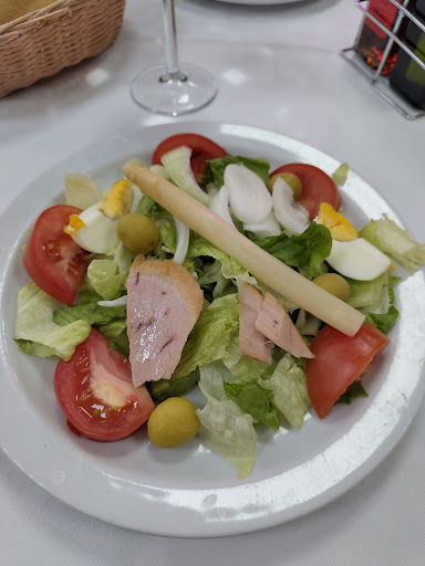 Muy bien! Fuimos de comida-tardeo para tomar algo y con tapas y alguna que otra ración y fue muy buena la experiencia recibida. Pedimos torreznos, croquetas, alitas de pollo, y en general, muy bien. Los precios a mi modo de ver están bastante bien, no es excesivamente caro a mi modo de ver. Además, por lo que tengo entendido ya que quedé con un colega uqe había ido en muchas ocasiones y me lo recomendó, para comer está impresionante, tanto de menú como de carta. De hecho, disponen de una gran salón en la zona trasera. En el propio mediodía, cuando nosotros llegamos, pudimos apreciar como un montón de trabajadores preparaban la comida, creo si no recuerdo mal que era marisco, en las propias mesas. Iban bien trajeados y se notaba que se preocupaban por ofrecen un gran servicio y producto. Espero honestamente que en otra ocasión tenga la oportunidad de probarlo para comida o cena. Estoy casi seguro de que la experiencia pueder ser muy óptima. Por otro lado, el ambiente el cual estuve, zona de barra, dependiendo puede dejar que desear. En nuestro caso fue porque comenzamos por el mediodía o poco nates, estilo 12:00, y a medida que avanzaba el tiempo, sobre 14:30-15:00 hora de comida, eso ya era inviable. Se llenó de muchísima gente hasta el punto de que costaba llegar a la barra (comprensible teniendo en cuenta la hora que era y si la clientela le gusta el lugar, buen señal también hay que decirlo). Por otro lado, el nivel de ruido, por lo menos dentro, nos resultó es excesivamente alto. Ocurrió en el momento que estaba tan lleno como cabe esperar pero tuvimos que salir a la terraza ya que era inviable el poder mantener una conversación. En este aspecto si que me llamó la atención ya que en poco lugares me ha pasado. También estuvimos en la terraza y la verdad que muy agradable. Teníamos lona para poder taparnos del sol y la verdad que else estaba bastante bien. En cuanto al parking, como llegamos estilo 12:00 había algo de sitio pegado al restaurante pero como vayas más tarde, por lo que pude apreciar bastante complicado. Mucho vehículo en doble fila que, teniendo en cuenta que es un polígono, ya en la mediodía y tarde, sumado a que tienen bastante clientela y empresas alrededor, es comprensible. Si decidís ir que, bajo mi punto de vista, es una gran decisión, intentar ir con tiempo ya que si no resulta algo complicado por el tema comentado del aparcar. En nuestro caso no tuvimos que hacer reserva pero imagino que visto lo visto, si vas a acudir rollo fin de semana o con grupo grande, mejor reserva con tiempo. Para finalizar, si quieres recibir un gran trato, comer muy bien tanto de tapeo como de comida formal (por lo que me he comentado en esto últimosl y lo que he podido ver), este es un gran establecimiento que cumple con esas condiciones. Muy...