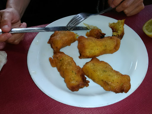 Comida de ínfima calidad, sardinas nada frescas y tiesas fritas con un aceite hiper quemado de frituras anteriores