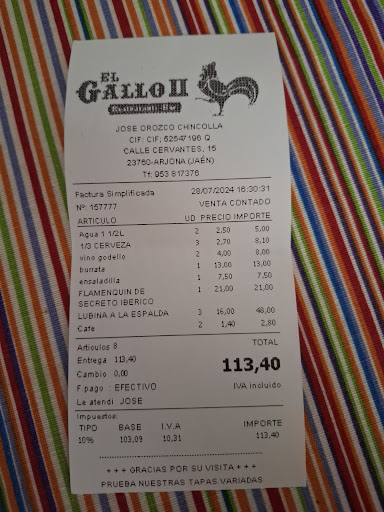 Read moreVisitar El Gallo en Arjona ha sido una experiencia gastronómica que repetiría sin pensarlo. Desde que entras, el ambiente te envuelve: acogedor, con un trato cercano por parte del personal y ese aire de cocina hecha con cariño que se respira en cada rincón.
