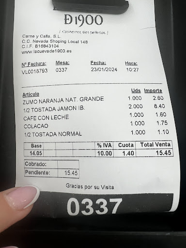 La forma de realzar la comanda a través de un código QR es lamentable y mucho más que los/as camareros/as insistan en que se tiene que hacer así ya que según ellos es más rápido y mejor. Ante mi negativa a realizar el pedido mediante ese sistema me preguntaron que quería de muy mala gana casi a distancia sin mirarme a la cara y girado hacia el lado opuesto donde me encontraba. Cuando me trajeron a la mesa la consumición no correspondía a lo pedido lo habían llevado a otra mesa cercana y a la otra mesa mi consumición por lo que tuvieron que cambiar de una mesa a otra y viceversa. Un desastre. No pusieron tapa y cuando le explique a la persona que le pagué en la barra ya que no se pasaron cerca de las mesas en ningún momento para pedir la cuenta que ese sistema al final suponía la desaparición del personal me respondió que hacía lo que le decían. En total había 2 personas atendiendo las mesas una en la barra y otra en la cocina o lo que sea ya que prácticamente lo que hacen es partir embutidos y servirlos en un trozo de papel sobre la mesa. Es decir ni siquiera ponen platos ni para la comida ni para las tazas de café. Personalmente no repetiré nunca más. Soy cliente de la Cueva desde hace más de 40 años en el cruce de Maracena en Granada cuando era un restaurante de verdad. Desde que empezaron con las franquicias todo cambió a peor... pero lo de las comandas telemáticas a través del móvil es vergonzoso. Por cierto los embutidos que es casi el cien por ciento de lo que sirven son cada vez de peor calidad independientemente del mal servicio...