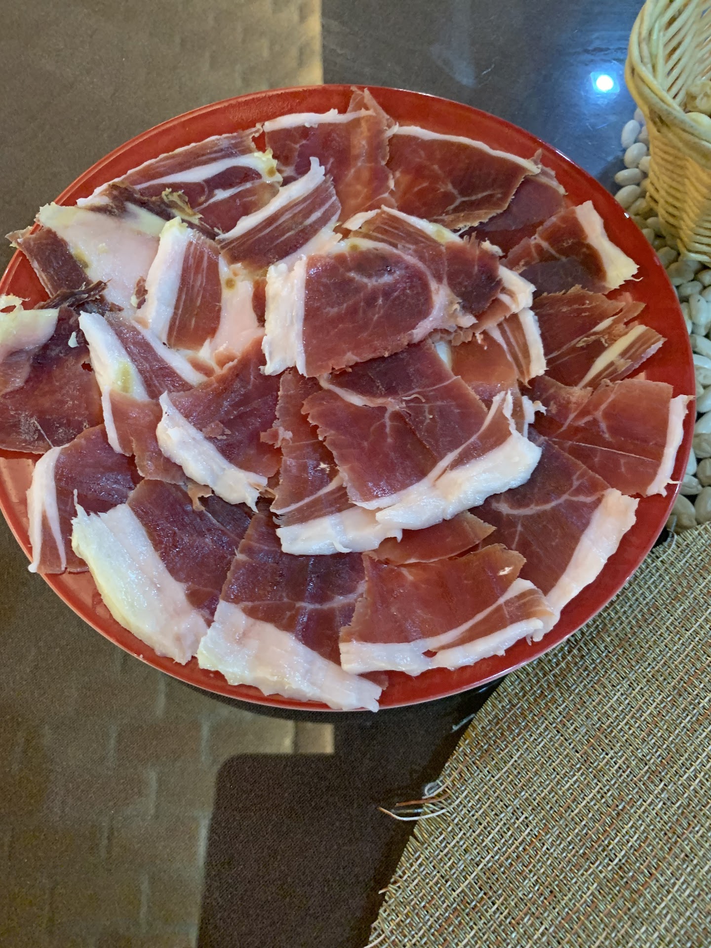 Pedí media ración de jamón de bellota (la mitad de 22 €) y me plantan lo que aparece en la foto. Después de preguntarle una primera vez, me confirma que sí, que es jamón ibérico de bellota. Después de una segunda vez, que le indico que lo retire, me vuelve a comentar que es lo que le han servido en cocina, y que es lo que le han dicho que es. Después de pagar mis otras consumiciones insisto en comentárselo, y me comenta que es lo que le ha dado el jefe. Le indico que es un intento de estafa, pero sigue indicando que es lo que yo le he solicitado. Creo que con la imagen queda claro que no lo es, y se trata de una estafa. Si no tienen un determinado tipo de producto ofertado en la carta, no pasa nada, pero indíquenlo, no intenten estafar a los clientes con un producto que no es. De los tiempos de servicio mejor no hablamos… Después de escribir la reseña, obtengo la respuesta del local. Me parece increíble que sigan defendiendo que se trata de jamón ibérico, ni 100% ibérico ni 50% cebo. Creo que vivimos en un país en que la mayoría de la gente sin ser sibarita sabe diferenciar un jamón serrano de un jamón ibérico, sea este 50% raza ibérica - cebo o 100% raza ibérica - bellota. En la foto creo que queda claro, y después de probar un trozo, me quedó claro tal suposición. Decir que un jamón es ibérico bellota cuando no lo es, es una estafa bastante normalizada en restauración. Pero lo que me parece intolerable es vender un jamón serrano por un 100% ibérico...