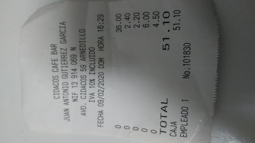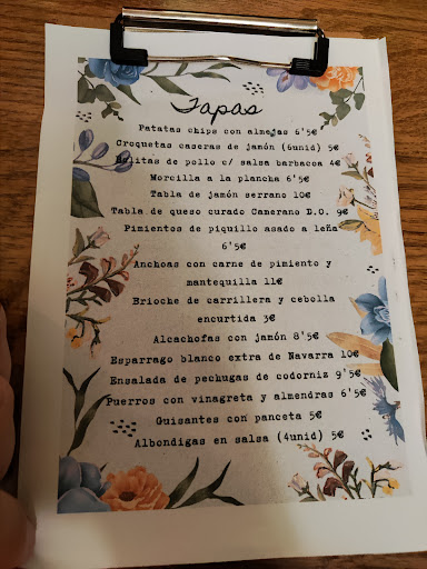 Read moreDescontentos. Comida corriente y precios caros, el "menú" consiste en dos platos.NO INCLUYE PAN NI BEBIDA NI POSTRE ,el pan te lo ponen sin pedirlo y aunque no lo comas te lo cobran igual, las cantidades normalitas y pedimos revuelto de setas gambas y gulas (y las gulas y las gambas brillaban por su ausencia),el bar es pequeño y la verdad estuvimos apretados en la mesa,luego ya en el tiquet ni siquiera te ponen que es cada cosa pero le pregunte y me dijo:36 (los tres"menus" 2,40 el pan, 2,20 el agua,6 el vino y 4,50 los tres cafes y sin postre y menos mal que no lo pedimos desde luego que...