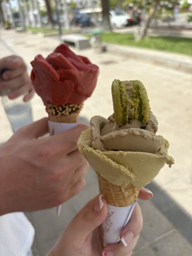 Absolutely amazing place! Definitely on the pricier side for ice cream but it is so worth it considering the quality and artistry of the ice cream! Apparently the place is a franchise and only been open for 2 months, the staff are lovely and helpful. We got 2 normal cones with 2 flavours each: pistachio and tiramisu ice cream (added pistachio macaroon) & strawberry and raspberry sorbet. We paid an extra €1 each for add chocolate to the inside of the cones which was very worth it. Both were amazing. You can get as many flavours as you like according to the girl and there is a lot of it! You need to be quick though as it melts easily with the heat (but that’s how you know it’s good). We were €17.50 for the two ice creams and a bottle of water. There’s indoor and outdoor seating and it’s a very chill environment, definitely be back without a doubt and if you get the chance to go you...