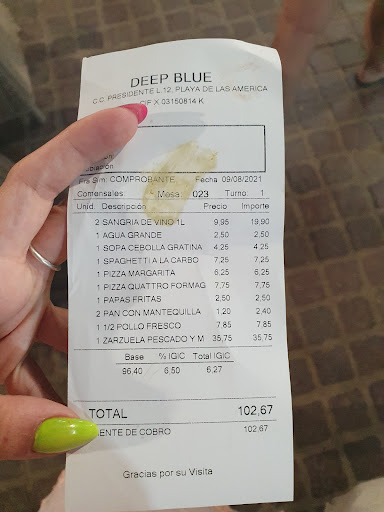 During my recent visit to Deep Blue Restaurant, I encountered several issues that significantly detracted from the dining experience. The quality of the food was subpar, failing to meet expectations or justify the price point. My girlfriends “rare” steak was well done and inedible and too tough to chew with little to no taste. The only way I can explain the taste of my burger was that the patty tasted like dog food and extremely processed and dry. Unfortunately, the situation was exacerbated by the owner’s response, which was dismissive and lacked accountability, offering no solution to the concerns raised. The only positive was the friendly waiter and good sangria, other than that I would recommend avoiding this restaurant at all costs!!! If you take a further walk up the path you will have better cheaper options. We have tried a few restaurants in that area which have been a really good experience. Avoid avoid avoid!!!!!!!! To conclude this review – if you want a bad experience with horrible tasting food, this would Be The perfect restaurant for that and they are more than happy to take your money with no...
