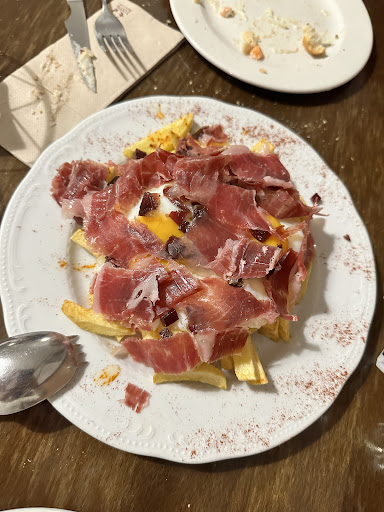 On the road in a remote place, from the outside it may not activate you but inside it is very characteristic, I definitely recommend it! Someone advised this place to me and my friends and now I want to advise it to others! Definitely to try! I'm just sorry that we discovered it the last day of our trip! We ordered a plate of Iberian ham and the chef came to the table to cut it! He also brought us the other dishes always describing them! The products absolutely fresh .. the waiter who served us very nice and fun I tried the Iberian secret, really tasteful plate! Great...