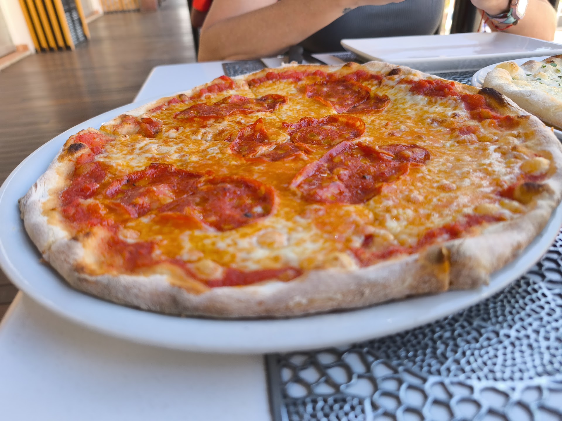 Rubbish name - Great Pizza To my shame, and despite recommendations, it was only on my last trip to Palm Mar I visited Fast Pizza for lunch and only then a couple of hours before I had to leave. Really great pizza - crisp thin crust, dimpled dough bubbling to almost but not quite burnt and good quality ingredients. Couldn't fault it. Basic pizza is a 'really good size', their large version is gigantic and caused me to double-take as I saw others taking them away. It's also insanely good value - they've got a 3-course menu that's under €9 which I feel I should definitely try next time, but deep down I know I just want that perfect pizza (and the next one will be the Iberico special I didn't...