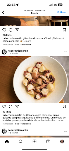 Read moreCame here the other night after trying this place last time I came to Tenerife last March. Being a bit of o foodie I knew it was decent quality. Iordered the Russian salad which was tasty (but can't see what twist there was!? ) I then ordered the boiled Octopus Galician style. When it arrived I noticed it doesn't look anything like the pictures of it on Instagram that they have, as the potatoes underneath were finely cut and it was swimming in olive oil. Unfortunately the potatoes had soaked up so much olive oil that is all you could taste was olive oil and gave a slightly bitter aftertaste. After a couple of mouthfuls I realised that I will not enjoy this and did not eat it. After speaking to the manager as to why I did not enjoy it I think he got the wrong end of the stick because he brought a bottle of olive oil out and said this is what we use it's top quality. Anyway he asked if I would like to choose something else and he recommends the pigs cheeks (which I ordered last time I was here) and sure enough they were delicious. \asked for the bill and to my absolute shock horror they had left the Octopus on the bill for 21 euro!! I couldn't believe I tried to explain again but nothing ...anyway I didn't want to get into an argument so I paid leaving on good terms. I’ve attached the pictures of their Instagram pictures of the Galician Octopus they advertise and you will see they use different potato which will make huge difference !