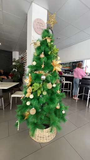 Read moreHacía mucho tiempo que no iba a comer algo, y ha cambiado mucho mi experiencia anterior a la que acabo de experimentar en familia. Comparando mi experiencias y mi gusto personal. la calidad de la comida es muy baja, pedimos café con leche Coca Cola y dos aguas de beber y papas con queso y pollo, dos sándwich, hamburguesa y una bocadillo de pata horneada el café estaba frío que se podía beber sin pausa,la Coca Cola en cristal de las grandes se agradece e agua en plástico y bueno las papas eran congeladas y el pollo simple descongelado triturado y lleno de queso parecía una sopa de queso bueno era “comestible”,los sándwiches mixto algo tan sencillo parecía que estaban huecos adentro las lonchas súper finas una era de Jamón solo y otra de queso eran tan delgadas y pequeñas que no se apreciaba si llevaba algo dentro, y dentro tenían puntitos negros e la plancha bueno era comibles pero muy pobre el Relleno, daba sensación de que solo comías pan, algo parecido con el Bocadillo bueno lo podías comer pero no lo pasaron por la plancha estaba soso y el tamaño Dude si era una pulguita el relleno igual una fina capa de queso de cabra del más barato era tan fina que se le rompió al hacer el Corte, porque estaba roto Dentro del pan y la pata asada de horno es como la que venden la calidad típica que venden en una charcutería local nada especial aunque creo que la podían haber presentado mejor pero súper delgada… bastante sencillo. La hamburguesa me levanté a mirar si la carne era de 120g porque cuando la vi pensé que se olvidaron de colocar la carne dentro, el pan no estaba mal…la ensalada era una rodaja de tomate y una pequeña hoja de lechuga sin vida y quemada del tiempo que llevaría en la nevera o fuera de ella … se intentó comer pero era incomible incluso no tenía sabor ,no estaba jugosa… No vi nada de atención y cariño al elaborar esas simples cosas…se puede disfrutar en otro lugares o en casa de cosas tan sencillas y con un mejor resultado y los mismos ingredientes. No volveré! Los postres que tienen en vitrinas entran por ojos se veían de buena pinta, aunque no los probé seguramente no los hacen ellos mismos. Los platos donde sirven son incómodos y son desproporcionados para lo que llevan o muy pequeños que sin querer puedes manchar la mesa! La camarera que nos atendió no era desagradable, nos atendió bien, los baños y comedor...