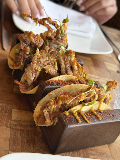 Overall: Ambiance 9.5/10 Service: 9/10 Vibe: 9/10 Price: 9/10 (it’s not expensive considering the quality of the restaurant in general) Starters: Guac 10/10 Chicken teriyaki 8.5/10 Crab taco’s 7.5/10 Mains: Salmon 8.5/10 Ribeye 9/10 Desserts: 3 leches 6/10 Creme...